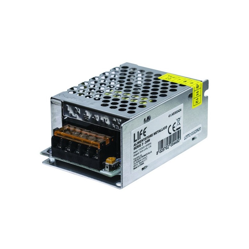 Descrizione: Alimentatori contenitore Metallico Serie: ALIMENTATORI A TENSIONE COSTANTE Frequenza: 50/60Hz Protezioni: Protezione da sovraccarico, cortocircuito, sovratensione e surriscaldamento Potenza: 24W Tensione di ingresso: 100-240Vac Tensione e corrente in uscita: 24Vdc / 1A Tipologia attacco: morsetti a vite Temperatura di esercizio: -25°C a +70°C Tensione in uscita: 24V Dimensioni: 85x58x35mm (L*W*H) Peso: N/A Grado di protezione IP: IP20