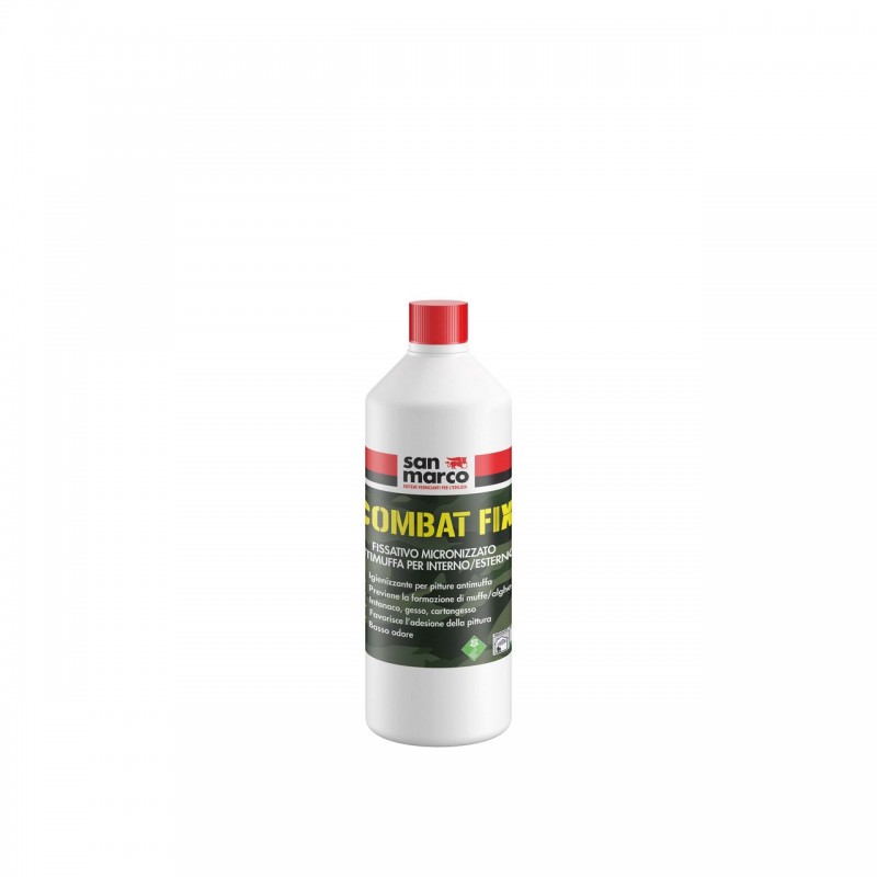 COMBAT FIX è un fissativo antimuffa per consolidare e preparare le pareti murali prima della tinteggiatura. Si applica all'interno o all'esterno su intonaci sia nuovi che vecchi, superfici in calcestruzzo, gesso e cartongesso. COMBAT FIX è particolarmente indicato nel caso in cui siano presenti tracce di muffa o se si desidera prevenirne la formazione. Perfetto nel caso di lievi infestazioni o per potenziare e prolungare l'effetto della successiva pittura antimuffa. COMBAT FIX uniforma la capacità di assorbimento delle pareti trattate e consolida le superfici sfarinanti migliorando l'ancoraggio del successivo trattamento di finitura e la resa estetica finale. Per diluire il prodotto e pulire gli attrezzi a lavoro concluso utilizzare acqua. Prima di trattare con COMBAT FIX, è consigliato rimuovere le eventuali tracce di muffa con il detergente COMBAT 222.