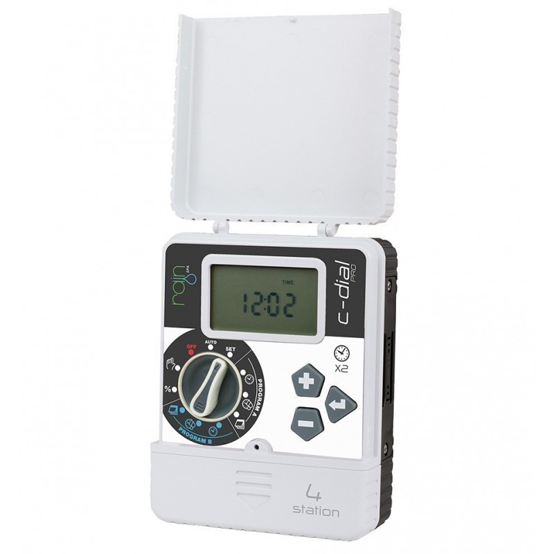 CENTRALINA IRRIGAZIONE C-DIAL RAIN X INTERNO ZONE 4 VOLTS 220/24 2 programmi indipendenti - 2 partenze per ogni programma - visualizzazione della prossima irrigazione - tempi di irrigazione da 1 min. a 240 min per stazione - cicli di irrigazione da 2 al giorno a 1 ogni 7 giorni -programma d'irrigazione per giorni settimanali regolazione stagionale da 10% a 200% funzione OFF - segnalazione batterie scariche - memoria non volatile