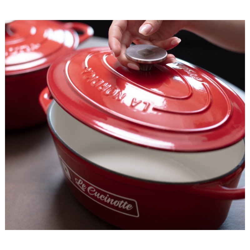 Interni smaltati Lo smalto chiaro è particolarmente indicato per la preparazione lenta a medie o basse temperature, garantendo una cottura omogenea e bilanciata, capace di sprigionare i sapori autentici dei cibi. Facile da pulire dopo ogni utilizzo, rende la cucina un piacere senza sforzo.