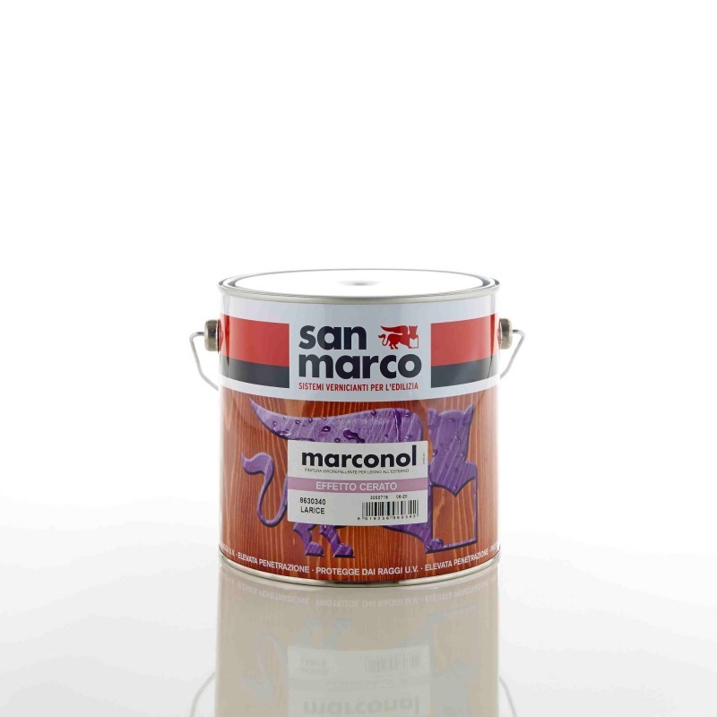 MARCONOL CERATO è un impregnante protettivo del legno ad azione riempitiva e idrorepellente ed effetto semilucido. Dotato di elevato potere penetrante, protegge il legno dalle sollecitazioni meccaniche superficiali e dall'azione degli agenti atmosferici, dei raggi UV e degli inquinanti, anche nel caso di condizioni severe, garantendone un aspetto inalterato nel tempo. Perfetto per proteggere perlinature, sottotetti, infissi, poggioli, steccati, persiane, scale e oggettistica varia, MARCONOL CERATO può essere usato su legno nuovo, vecchio o già verniciato, all’interno o all’esterno. MARCONOL CERATO forma un film microporoso altamente traspirante al vapore acqueo che consente al legno di mantenere inalterato il suo naturale equilibrio igrometrico, preservandolo dall'inconveniente dello sfogliamento, tipico delle tradizionali vernici sintetiche per legno. Per questo con MARCONOL CERATO la manutenzione diventa facile e alla portata di tutti, inoltre è semplice da applicare e grazie alla sua speciale composizione non forma antiestetiche rigature da pennello. MARCONOL CERATO, arricchito di pigmenti minerali e micronizzati, è un prodotto trasparente che lascia visibili le venature del legno ravvivandone le tonalità naturali. Disponibile incolore. Per l'impiego avvalersi dei giusti accorgimenti di sicurezza. Indicato per l'uso esterno, può essere impiegato anche all'interno seguendo sempre le stesse accortezze raccomandate per i solventi (mascherina, guanti, arieggiamento). Per la pulizia finale degli attrezzi da lavoro utilizzare ACQUARAGIA. Nel caso di legni teneri e secchi oppure quando l'assorbimento è eccessivo, prima di MARCONOL EFFETTO CERATO applicare uno strato di MARCONOL IMPREGNANTE colorato.