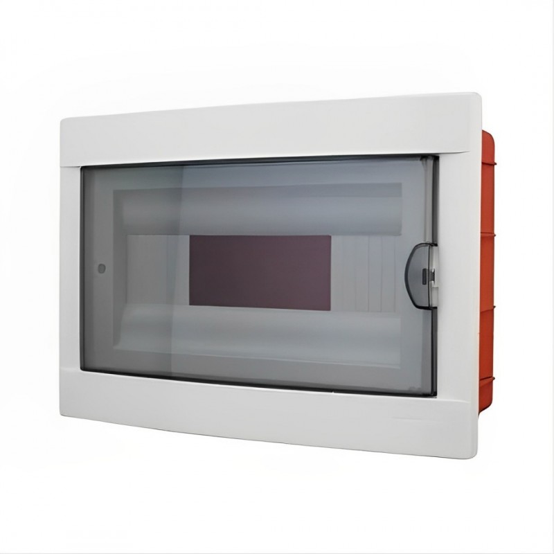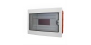 In resina termoresistente ad alto grado di isolamento. IP40. Autoestinguente secondo le norme IEC670-CEI23-48. Portello in policarbonato fumè.