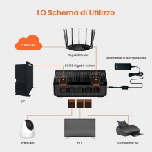 Switch SOHO SG105 LAN Gigabit con 5 Porte autoregolanti TENDA. 5 Porte RJ45 Base-T da 10&100&1000 Mbps; Porte 1-4: Porte IEEE 802.3af & PoE Potenza massima di uscita di ciascuna porta PoE: 30 W; Potenza massima di l'interruttore: 58 W Dimensioni del desktop, uscita dell'adattatore di alimentazione 63W Supporta VLAN a un tasto, la porta 1-4 sarà isolata, ma possibile comunicare con la porta 5. Installazione semplice ed immediata. Lo switch TEG1105P non c’è la necessità di alcuna configurazione, è subito pronto all'uso. Abbiamo reso l'installazione rapida e semplice, così puoi iniziare a sperimentare uno dei migliori di Internet con TEG1105P. Le porte e la potenza incorporata possono fornire una protezione da fulmine fino a 6kV. Fornisce inoltre protezione da cortocircuito PSE, sovraccarico PoE, interruzione di corrente temperatura, sovratensione e protezione contro le sovratensioni. In caso di maltempo, può anche fornire servizi stabili e affidabili per la rete di monitoraggio e proteggere normalmente la trasmissione delle immagini. Se la modalità di estensione è abilitata, la distanza di trasmissione sia di potenza che dei dati si estenderanno fino a 250 m (10 Mbps), questa funzione può sostituire l'extender e parti della fibra. Estenderà la distanza dell'intero sistema e ridurrà il costo del progetto. Le porte 1-4 sono conformi agli standard di alimentazione IEEE802.3af e IEEE802.3at. L'intero switch offre una potenza di uscita PoE massima di 58W, mentre ciascuna porta offre una potenza di uscita PoE massima di 30W. Le porte possono essere utilizzate per fornire alimentazione e scambiare dati con AP e telecamere IP.