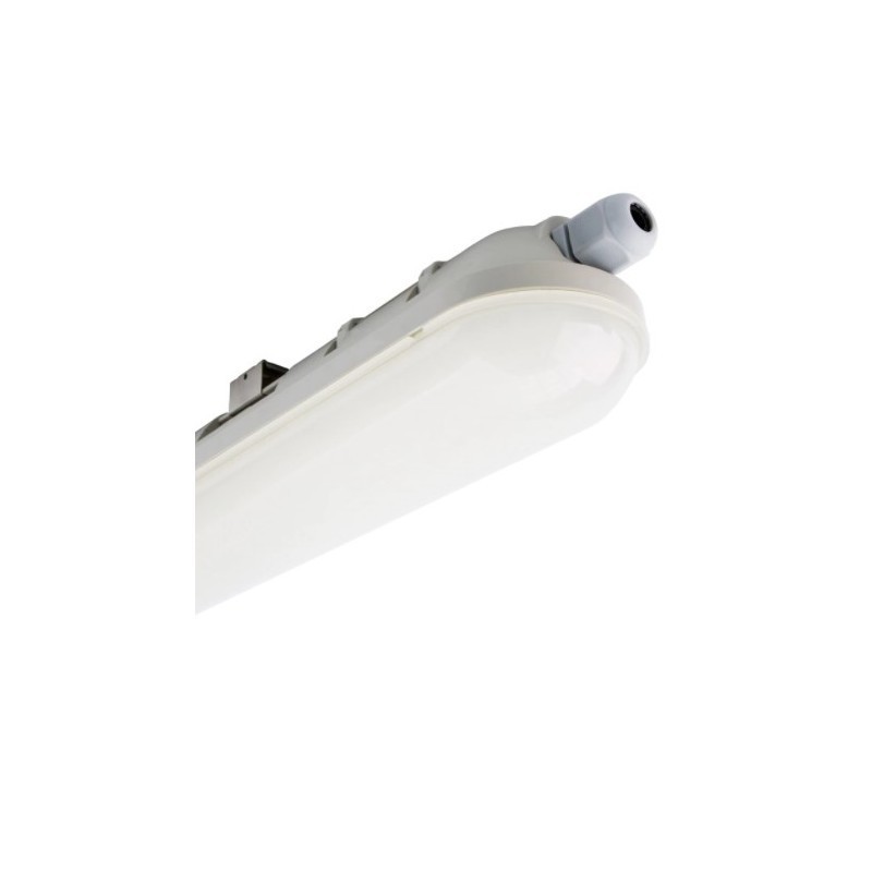 Plafoniera stagna IP65 per 2 tubi LED da 18W, schermo e corpo in policarbonato, installabile sia a parete che soffitto, A++ Dimensioni: 59 x 8,6 x 6,6 cm. Plafoniera stagna IP65 per tubi LED di ultima generazione, corpo in policarbonato progettato per resistere alle sollecitazioni più gravose, la guarnizione siliconica e i ganci di chiusura in Nylon rinforzato, garantiscono il grado di protezione IP65. Gli aspetti illuminotecnica sono di tutto riguardo, i tubi LED ad alta efficienza riescono ad fornire il massimo delle prestazioni grazie al recuperatore di flusso integrato nel riflettore.