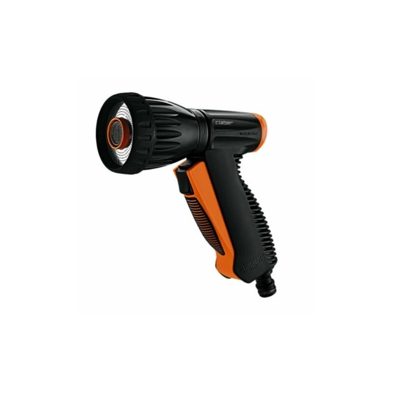 PISTOLA BALCONY CLABER ART.9565 Con un getto delicato per annaffiare senza schizzi d’acqua e terra, è gradevole da impugnare grazie al rivestimento in gomma. Il pulsante posteriore permette di aprire o chiudere l’acqua con un dito ed anche per regolare la portata, basta una mano.protezione antiurto alte prestazioni facile e versatile regolazione ideale per terrazzo e balcone. Doccia pistola dotata di aeratore, nuova impugnatura anatomica gommata e comodo meccanismo anteriore a pulsante per l’apertura e la chiusura del flusso. Manopola posteriore per regolare la portata d’acqua. Ghiera in gomma con funzione antiurto, apribile, ispezionabile e pulibile. L’aeratore, anch’esso removibile e pulibile, permette di ottenere un soffice getto d’acqua miscelata con bolle d’aria per irrigare i vasi senza schizzi.