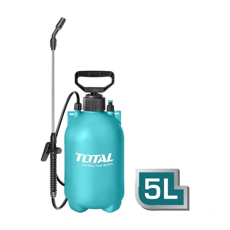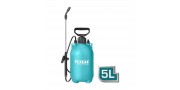 Capacità: 5L. Valvola di sicurezza. Con fasce per il trasporto. Pressione: 2.5bar. Tubo flessibile da 1.2m. Lancia in Acciaio Stainless. Ugello in plastica. Interruttore ON/OFF con blocco. Getto regolabile.