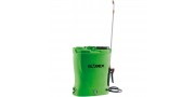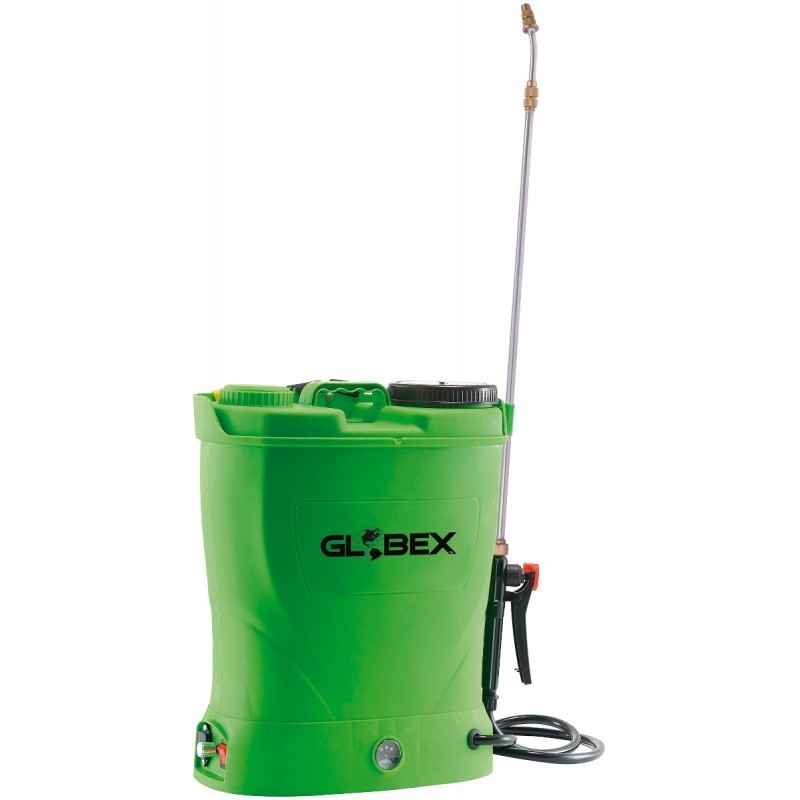 Pompa a membrana, a zaino, pressione 1,5÷4 bar con regolatore elettronico, portata max 2,2 l/min, schienale ergonomico e spallacci imbottiti, lancia telescopica in acciaio inox, ugello in ottone, port a lancia, voltometro. In dotazione: batteria al litio ricaricabile 12V 8Ah, caricabatteria, 4 ugelli.