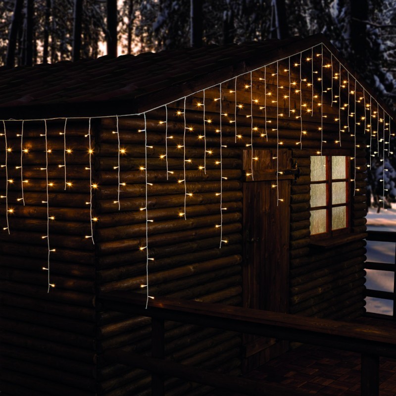 Con led reflex Ø 5 mm ad alta luminosità. Memory controller, 8 giochi di luce selezionabili. Cavo in gomma bianco, trasformatore 24V, tensione 220-240V. Per uso interno ed esterno. Lunghezza cavo alimentazione 4 metri.
