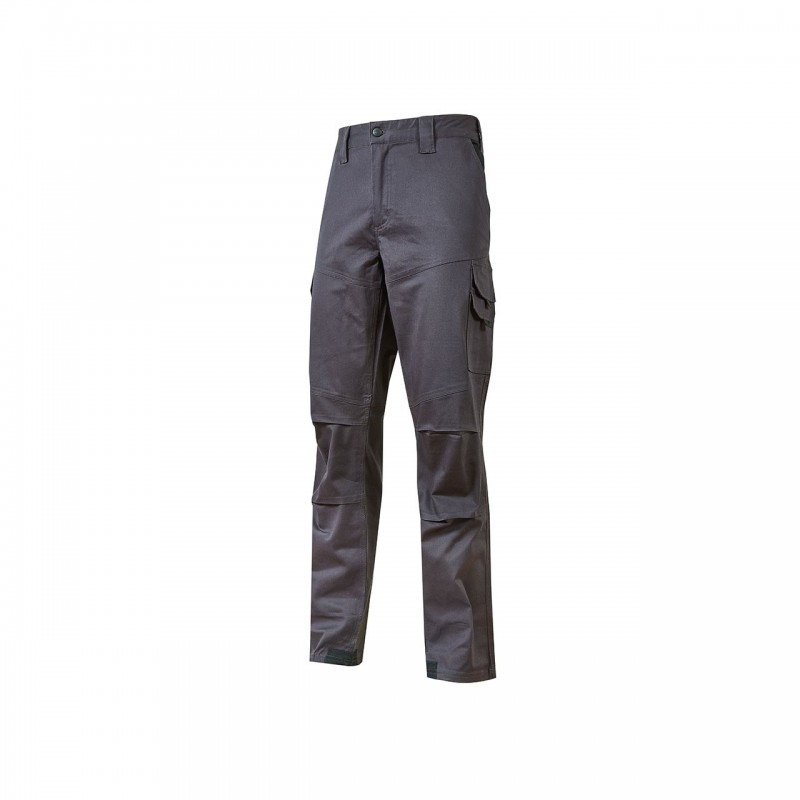 Pantalone da lavoro in cotone elasticizzato. Dotato di due ampie tasche multifunzionali laterali, due tasche anteriori e una tasca posteriore.