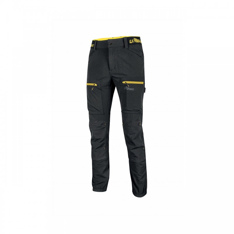 Pantaloni da lavoro stretch in tessuto U-4 con vestibilità jogging e inserti elasticizzati in vita e sul fondo per offrire una migliore vestibilità. Chiusura centrale con zip e bottone gommato antigraffio.