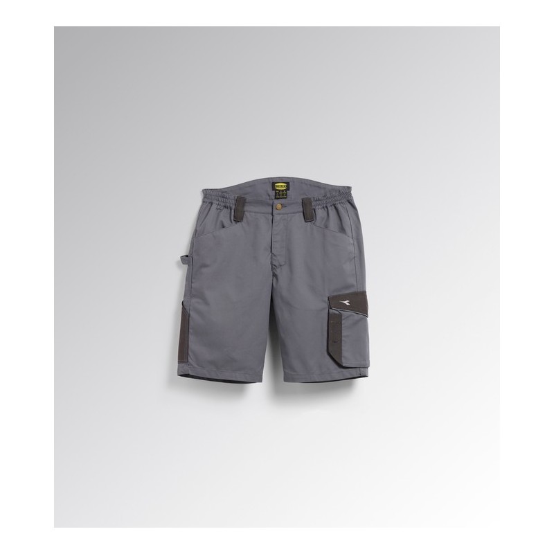Bermuda con tasche laterali, dettagli rifrangenti, tasca portametro, portamartello e dettagli canvas in poliestere antiabrasione, elastico in vita, tripla cucitura.