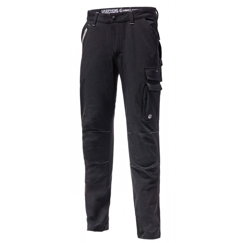 Pantalone 90% poliammide - 10% spandex, 250 gr/mq, interno con filato termico in Graphene, doppia tasca frontale, tascone e porta metro. Resistente a strappi e lavaggi. Colore: Nero