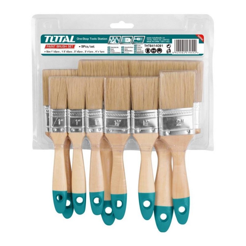 Set da 9 pennelli con manico in legno