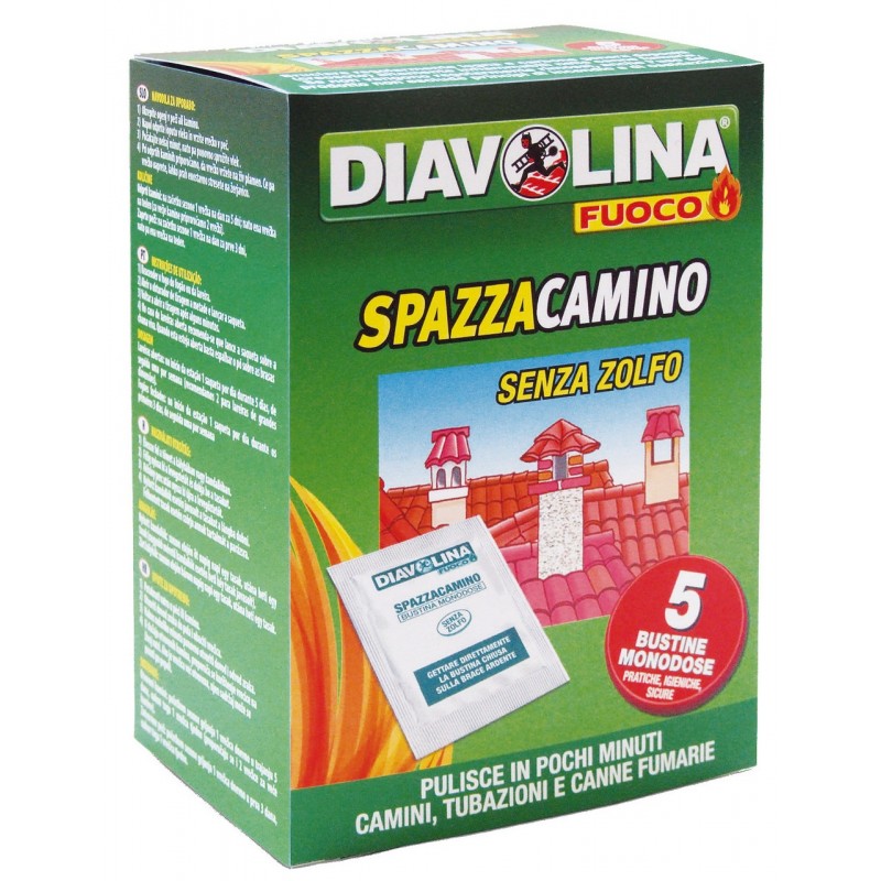 Spazzacamino in bustine monodose senza zolfo. Ideali per camini, stufe e forni a legna. Usate con regolarità, oltre a mantenere pulite le canne fumarie, prevengono gli incendi domestici causati dalle ostruzioni. Confezione 5 bustine 50 grammi cadauno.
