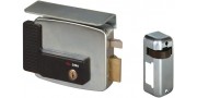 Elettroserrature da applicare a cilindro. In acciaio zincocromato, con scrocco autobloccante, cilindro esterno fisso, tettuccio protettivo, sottobocchetta.