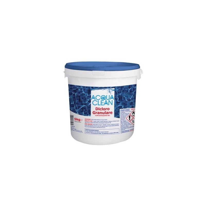 Agente clorante stabilizzato al 56% - granulare. Prodotto a rapida e completa dissoluzione, idoneo per immissioni manuali negli skimmers o tramite pompe dosatrici. Shock iniziale: 200 g/m³. Il consumo può variare in funzione della temperatura, della luce solare, del numero dei bagnanti e delle condizioni atmosferiche. Per una resa ottimale, mantenere il valore del PH tra 7,2 e 7,6.