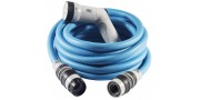 Tubo estensibile NTS 6 strati - Ø interno 9,8 mm. - Ø esterno 14,7 mm. Pressione 18 Bar. Strato interno - intermedio - sottostrato in elastomero (TPE) con agente scivolante per migliorare e favorire il flusso d'acqua che conferisce al tubo la capacità di estendere e allungarsi in modo elastico. Strati di ilati di poliestere a maglia e intrecciati (PET). Strato esterno di copertura colorato in elastomero (TPE) resistente all'invecchiamento. In dotazione 2 raccordi a scatto (1 acquastop) e presa rubinetto 1"-3/4", pistola multigetto (4 tipologie di getto), impugnatura in gomma antiscivolo.