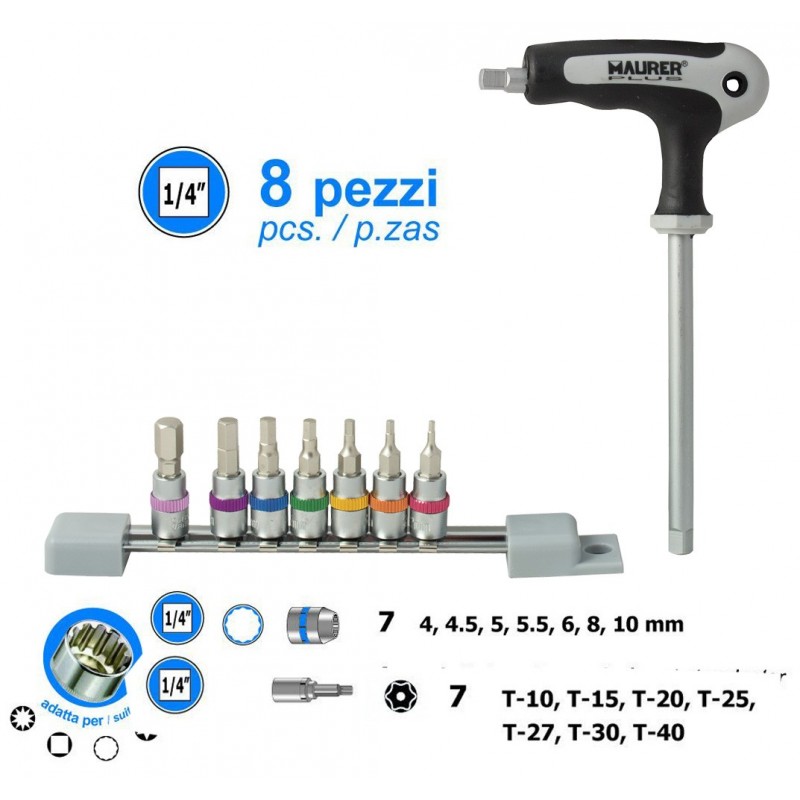 SET INSERTI BUSSOLA CON IMPUGNATURA 8 PZ TORX MR