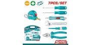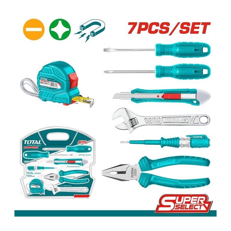 Set 7 attrezzi manuali Include: 1 pinza combinata da 7 pollici 1 cacciavite cercafase (Tensione di prova: 100-500 V CA) 1 chiave regolabile da 6 pollici 1 Coltello a lama a scatto da 9 mm 1 Cacciavite SL5.5x100 1 Cacciavite PH1x100 1 metro in acciaio 3M