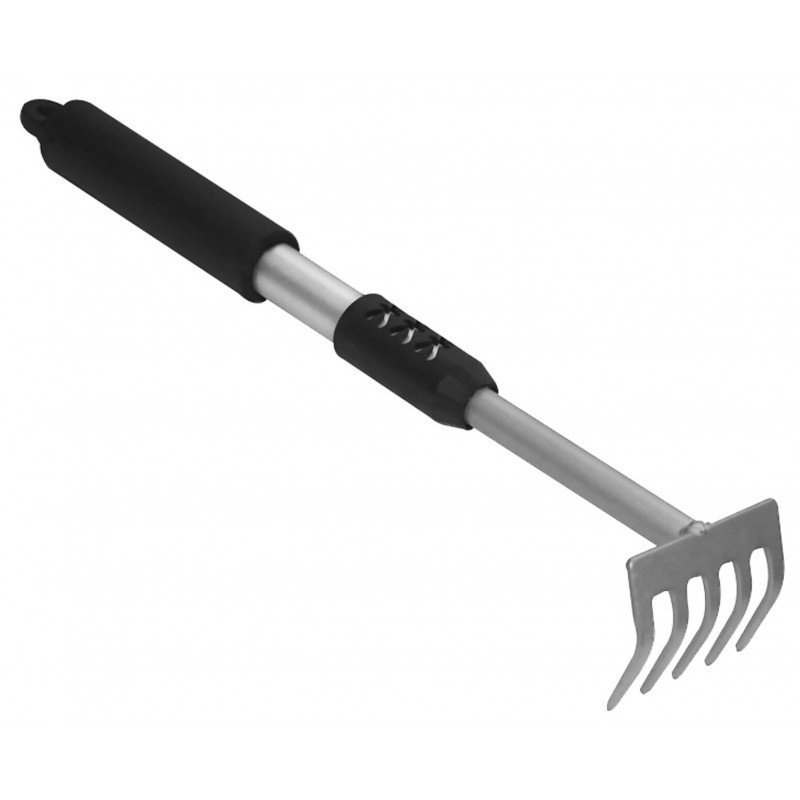 RASTRELLO 5 DENTI 36 CM Rastrello a 5 denti Brixo con manico in alluminio ed impugnatura soft-grip, lunghezza 36 cm.