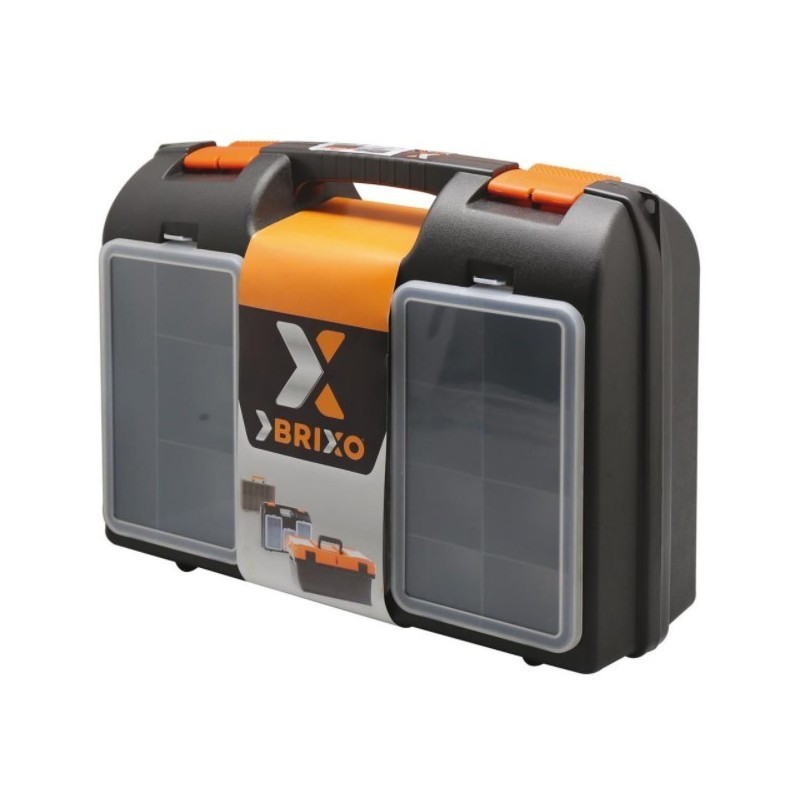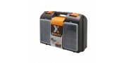 Cassetta portatrapano in materiale plastico antiurto, con organizer trasparente 9 divisori portaminuterie, chiusure a scatto, completa di spugna.