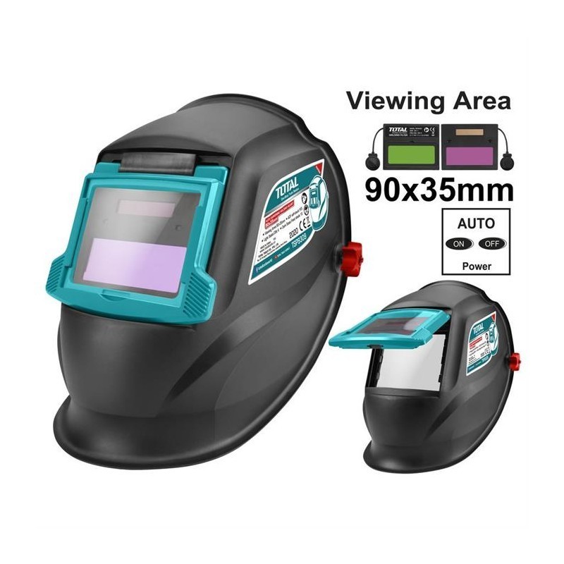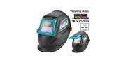 MASCHERA PER SALDATURA AUTO OSCURANTE CON AREA VISIVA 90*35MM: 2 sensori Stato luce: DIN 4; Stato oscurato: >DIN10; Protezione UV/lR: DlN 16; Tempo di passaggio da luce a oscurato: 0,15-0,45ms; Temperatura di utilizzo: da -5°C a +55°C.