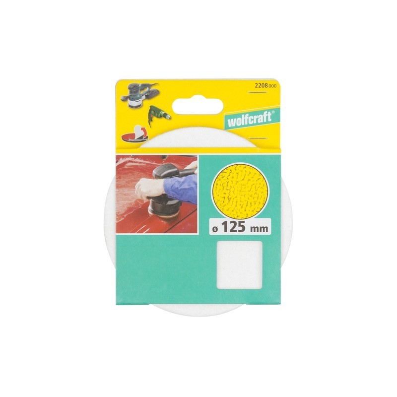 Disco Ø 125 mm. in feltro con retro rivestito in velcro, per trapani e levigatrici eccentriche, per platorelli con tessuto in velcro. Per lucidare vernici, metalli colorati e acciaio inossidabili con paste di lucidatura e paste abrasive.