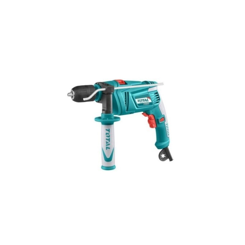 Trapano a percussione 850W TOTAL CARATTERISTICHE: Voltaggio: 220-240V ~ 50 / 60Hz Potenza: 850W Velocità a vuoto: 0-2700 giri/min Capacità mandrino: 13mm Mandrino Autoserrante Velocità variabile Reversibile con funzione Percussione